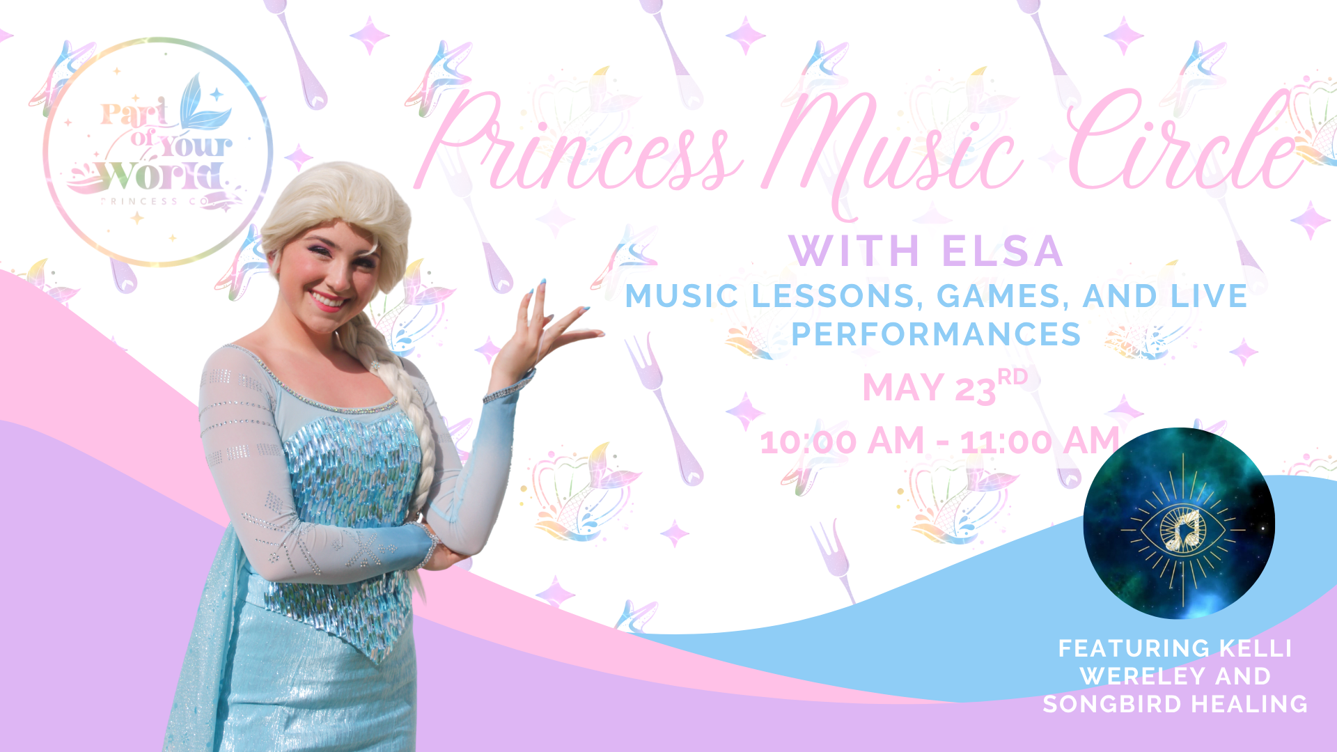 Join us for a magical morning of music, rhythm, and dance, featuring Kelli W. of Songbird Healing! Each child will learn a song inspired by the music of Frozen, followed by a visit and performance from Elsa herself!