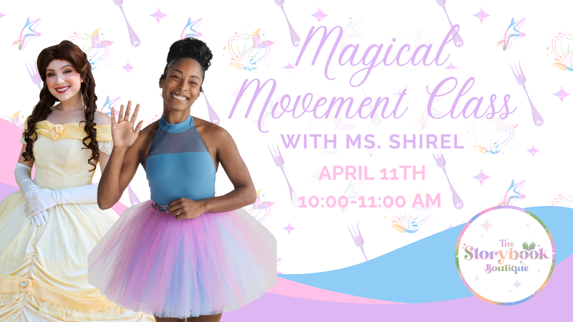Join renowned dancer and instructor Ms. Shirel for a magical movement and dance class inspired by classic fairytales! Each child will be lead through a short movement series, and then perform their sequence together for Princess Belle at the end of class! Professional portraits with Princess Belle is also included for each guest.